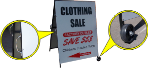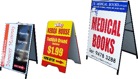 A-Boards are also known as A-Frames, Sandwich Boards or Foot Path Signs. It's an inexpensive promotion that can be easily transfered to any location.
